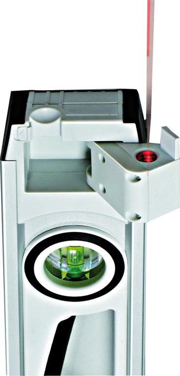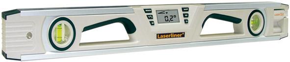 Z robustního plastu a eloxovaného hliníku ve stříbrné barvě. Se zaoblenou horizontální a vertikální libelou a 2 frézovanými měřicími plochami a silnými přídržnými magnety. Rychlé elektronické měření úhlů mezi 0° a 90°. Ukazatel naměřených hodnot je nastaven mezi 0° a 1° na dvě desetinná místa, mezi 1° a 90° na jedno desetinné místo. Funkce Hold (paměť naměřených hodnot) na 9 hodnot, zobrazení ve stupních, Inch/Feet nebo v procentech, jakož i s akustickým signálem při dosažení vodorovné, svislé polohy a polohy pod úhlem 45°. Linkový laser na stěnu k optimálnímu prodloužení měřicí plochy.