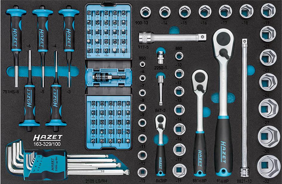 Provedení: Stabilní konstrukce z ocelového plechu, se 7 zásuvkami vysunutelnými do jedné strany (5 x 80; 2 x 165 mm výška), válečkový výsuv zásuvek, blokování uprostřed a na konci, jakož i jednotlivé blokování proti nechtěnému otevření během přesunu. Základní výbava obsahuje dělicí plech pro každou zásuvku. Boční stěny mají čtvercové děrování. Centrálně uzamykatelný pomocí cylindrického zámku. Pracovní deska z plastu odolného proti rozpouštědlům, s přihrádkami pro drobné díly. Se dvěma velkými kolečky uloženými na kuličkových ložiskách pro vysoká zatížení (O 125 mm), 2 otočné kolečky, na jedné straně s brzdami koleček (úplné zastavení) pro stabilitu ve všech směrech. Všechna kola jsou vybavena ochranou ložiska, která ložiska chrání před nečistotami a nitěmi. Povrch s práškovou barvou odolnou proti poškrábání, korpus v modré barvě Hazet, zásuvky v černé barvě.