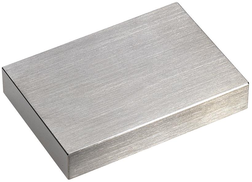 Vysoce legovaná ocel, minimální tvrdost 800 HV. Koeficient prodloužení na délku: (11,5 ± 1,0) x 10-6 K-1. Maximální stabilita měření a tvaru díky pečlivému umělému zpomalení opotřebování. Odolnost proti opotřebování, vynikající přilnavost při nasouvání. Každé z kalibračních tělísek je označeno individuálním identifikačním č. Třída tolerance 2: Nejčastější použití ve výrobě ke kontrole pravítek a k nastavení měřicích přístrojů.