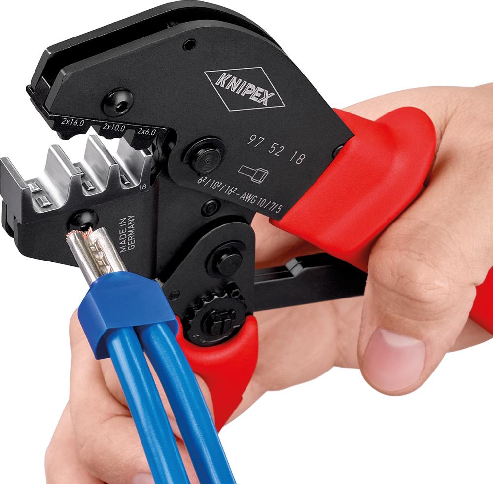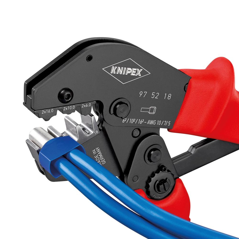 Krimpovací pákové kleště na kabelové koncovky Twin 2 x 6,2 x 10 a 2 x 16 mm2 KNIPEX (97 52 18) |