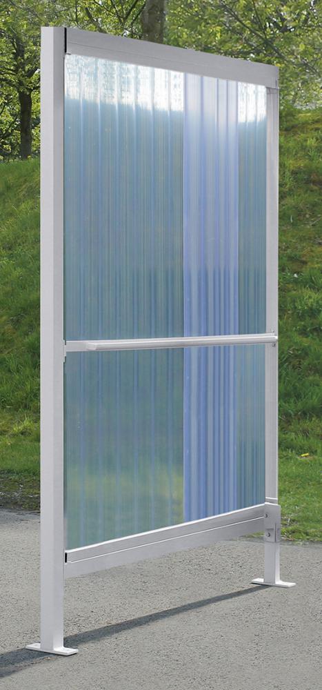 Přístřešek pro kuřáky model Jena, pozinkovaný rám Tato kuřárna nabízí rychlou ochranu před povětrnostními vlivy. Je cenově výhodná a snadno ji sestavíte sami. • Šetří místo: jen 2,2 m2 • Ocelová konstrukce: pozinkovaná, chráněná proti korozi • Zadní a boční stěny: z kvalitního vlnitého polykarbonátu • Dodávka: Základní jednotka včetně zadního a bočního panelu s opěrnou konzolou, další boční panel s opěrnou konzolou lze objednat jako volitelné příslušenství. Dodávka formou konstrukční sady s návodem k montáži a plánem základu. Přídavný boční panel s opěrnou konzolou