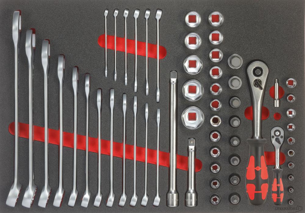 Modul s nářadím 3/3 vidlicové, očkové a nástrčné klíče 1/4" a 1/2" FORMAT |