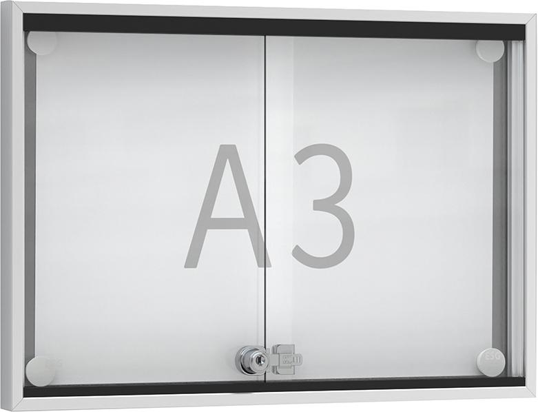 Vaše vývěsky jsou optimálně umístěny za sklem nástěnného panelu s posuvnými dvířky. Díky posuvným dvířkům umístěným na plastových kolejničkách je výměna vývěsek zcela bezproblémová, a to i v úzkých místech.