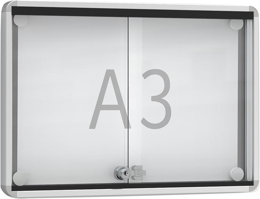 Vaše vývěsky jsou optimálně umístěny za sklem nástěnného panelu s posuvnými dvířky. Díky posuvným dvířkům umístěným na plastových kolejničkách je výměna vývěsek zcela bezproblémová, a to i v úzkých místech.