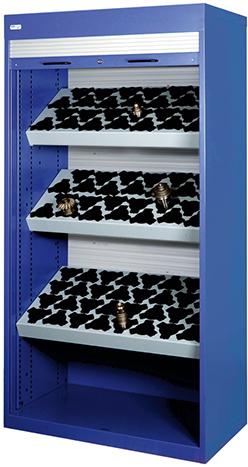 Tato roletová skříň má nosnost 1300 kg a nabízí prostor pro 84 nástrojových rámů.