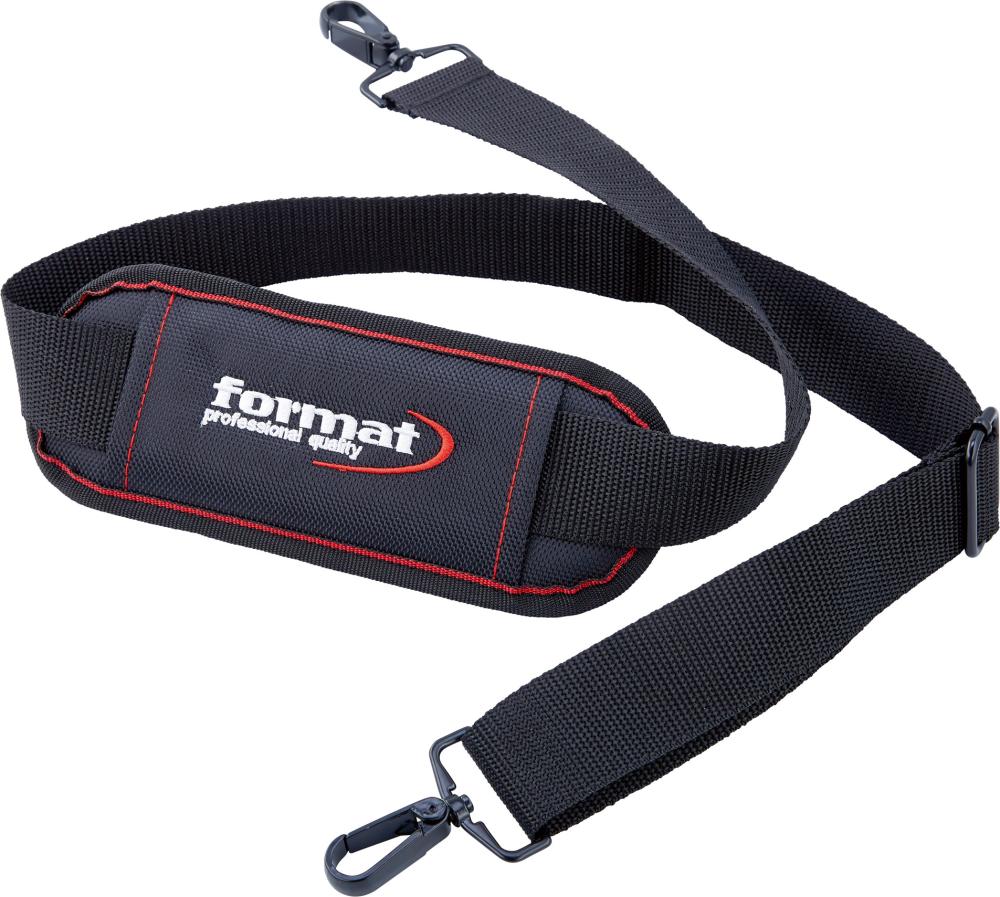 Z nylonové tkaniny odolné proti roztržení a otěru (1680 Denier), s ramenním polstrováním a karabinou. Řemen je na délku přestavitelný.