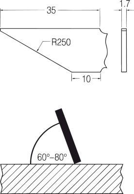 Použití: K bodově přesnému odstranění materiálu na obrobcích z plastu a lehkých kovů. Čepel je nutné nasadit v místě odjehlování pod úhlem 60° až 80° a plynulým pohybem táhnout přes celý obrobek. Nesmí se příliš přitlačovat.