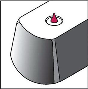 3. Zaoblený břit (r = 250 mm) umožňuje opracování obrobků bez poškození.