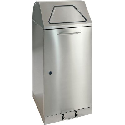Vhazovací klapka univerzálního odpadkového koše je nabízena s ručním nebo nožním ovládáním a má ergonomickou zakřivenou rukojeť a pedál z nerezové oceli.