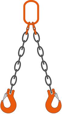 Dvoupramenný řetězový závěs, typ RML/RCH 14000/10000 kg Dvoupramenný řetězový závěs se spojovacími háky je celý vyroben ve třídě kvality 10. • 2 prameny • Závěsný článek typu RML • Spojovací hák typu RCH s bezpečnostní západkou • Nosnost: 0-45°/45-60° kg • Norma: ČSN EN1677-1 až ČSN EN1677-4, PAS1065, EN818-1-2-4-6