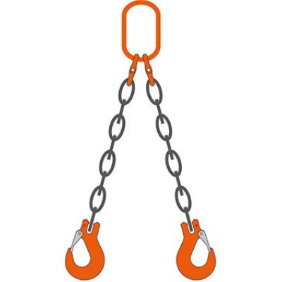 Dvoupramenný řetězový závěs se spojovacími háky je celý vyroben ve třídě kvality 10.