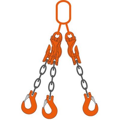 Třípramenný řetězový závěs se spojovacími háky je celý vyroben ve třídě kvality 10.