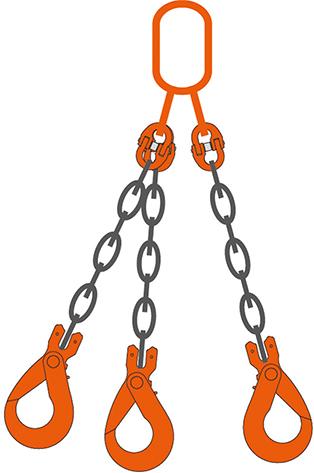 Třípramenný řetězový závěs se spojovacími háky je celý vyroben ve třídě kvality 10.