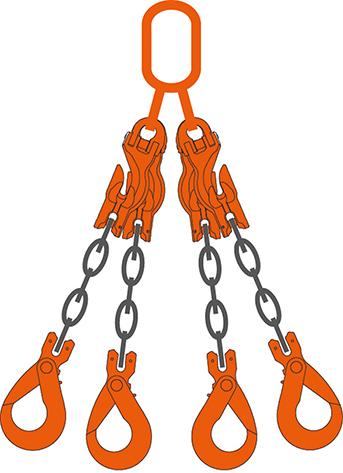 Čtyřpramenný řetězový závěs, typ RMA/RDG/RCS, 5250/3750 kg Čtyřpramenný řetězový závěs se spojovacím hákem je celý vyroben v třídě kvality 10. • 4 prameny • Závěsný článek typu RMA • Zkracovací hák typu RDG • Bezpečnostní spojovací hák RCS • Norma: ČSN EN1677-1 až ČSN EN1677-4, PAS1065, EN818-1-2-4-6