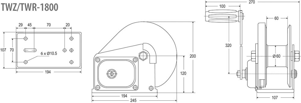 Rucní naviják TWZ 1800 nosnost 820 kg