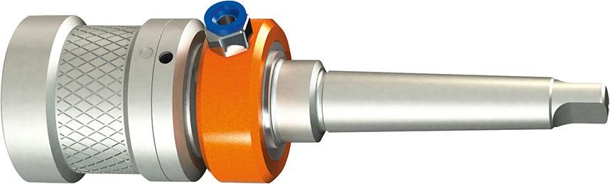 Rychloupínák Rota Quick® MK kužel 2 popř. 3 na všechny stroje s vrtacím vřetenem MK3, O 12–60 mm. S automatickým vnitřním chlazením a čepem na připojení hadičky s chladivem. Rychloupínák Rota Quick® umožňuje velmi rychlou výměnu nástrojů bez jakéhokoliv dalšího nářadí. Dodáváme včetně čepu na připojení přívodu chladiva a ve stabilním plastovém kufříku. Jak to funguje: Kroužkem otočte po směru hodinových ručiček a přidržte jej. Jádrový vrták zasuňte do upínáku, stočený kroužek uvolněte a rychloupínák se zaaretuje automaticky. Vhodný pro jádrové vrtáky (objed. č 1326 a1327).