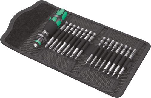 | Provedení | Obsah sady: 1 rukojeť Kraftform s rapidadaptérem 3 bity, křížové PH 1; 2; 3 3 bity pro křížovou drážku PZ 1; 2; 3 4 bity pro vnitřní šestihran, s kulovou hlavou, 3; 4; 5; 6 mm 6 bitů pro vnitřní TORX®, s kulovou hlavou, T 1 |