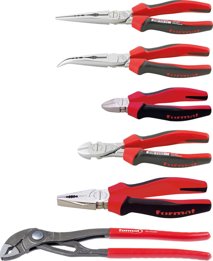 Sada kleští s chromovanou hlavou s 2-složkovými rukojeťmi 6 ks v kartonové krabici FORMAT (4317784632409) |