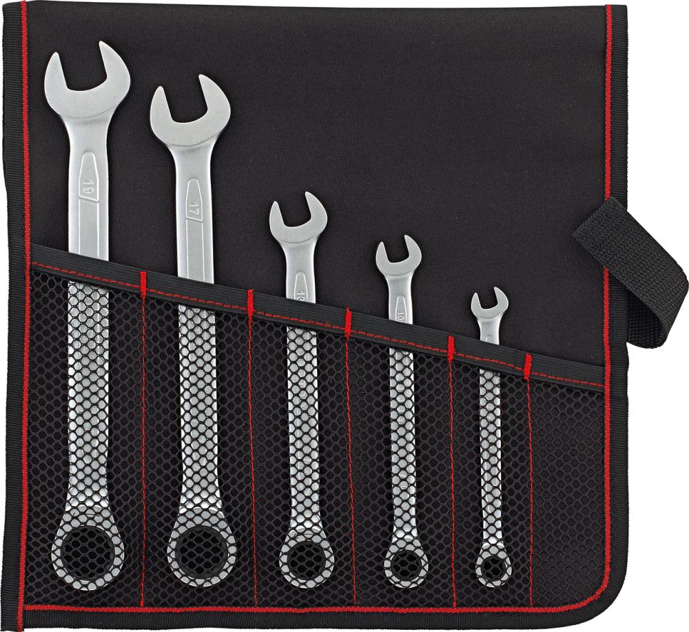 Sada vidlicových klíčů s očkovou ráčnou, rovných 8-24 mm 10 ks, v rolovací tašce FORMAT |