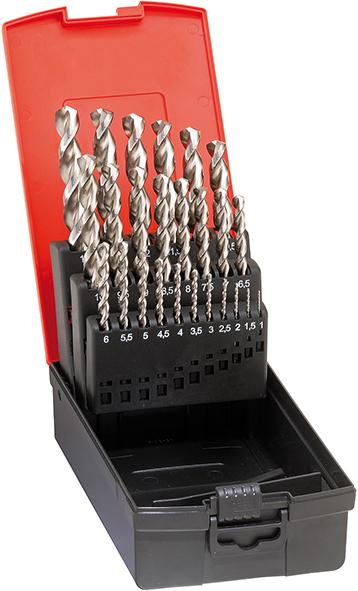 Především na legované a nelegované oceli, druhy litin se stupněm tvrdosti nad 800 N/mm2, oceli zpracovávané za tepla a za studena, oceli na cylindrická ložiska, vysoce-legované oceli, zušlechtěné a popouštěné oceli. Dodáváme v robustním vysoce kvalitním plastovém boxu s automatickou narovnávací funkcí vrtáků při otevření. Obsah sady (objed. č 1022).