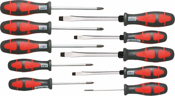 | Provedení | Obsah sady: 1 plochý šroubovák 3 x 75 mm 4 ploché šroubováky 4,5 x 90; 5,5 x 100 (2 ks); 7 x 130 mm 3 křížové šroubováky PH 1; 2 (2 ks) 2 šroubováky pro křížovou drážku PZ 1; 2 * Šestihranná čepel. |