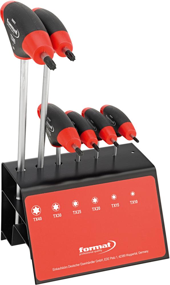 Sada šroubováků s T-rukojetí s boční čepelí 6 ks T10-40 ve stojanu FORMAT 4317784633123