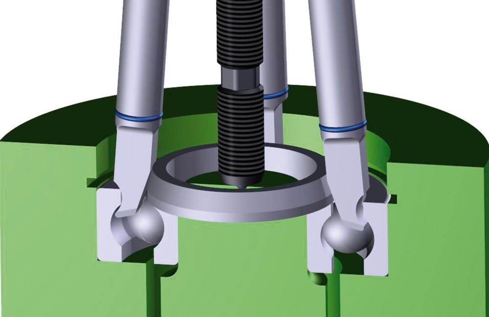 | Provedení | Obsah sady: 1 traverza 1 vřeteno 6 háků 7 opěrných kroužků 3 trojramenné protitlačné kusy (pro duté hřídele) | |