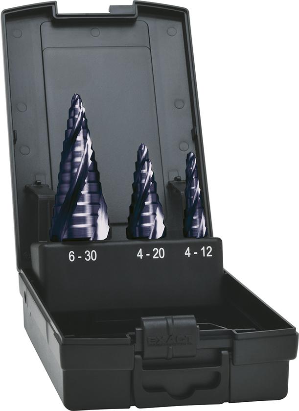 Sada stupňovitých vrtáků HSS TiAlN 4násobná spirálová drážka 4 - 30 mm EXACT (7064) |