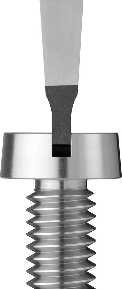 Provedení: Z vysoce legované pružinové oceli, s kulatou čepelí. Souběžný hrot se zkosenými rohy pro optimální přenos síly a sníženou vyhazovací sílu (bez efektu cam-out). Rukojeť s ochranou proti odvalení