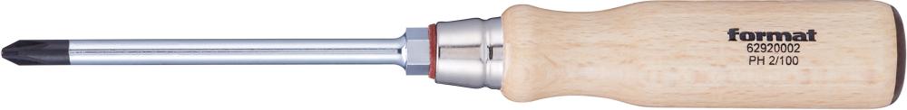 Šroubovák, dřevěná rukojeť, PH2x100mm FORMAT |