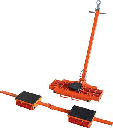 Tento řiditelný transportní podvozek s praktickou rukojetí a namontovanou točnou dokáže snadno přemisťovat těžká břemena.
