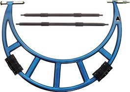 Stupnice matně pochromované, měřicí plochy osazené tvrdokovem, třmen z lehkého kovu, lakovaný povrch. S upínací pákou, regulací měrné síly jemnou ráčnou a s termickou ochranou na ruce. S výměnnými nástavci a kovadlinkami. Dodáváme s nastavovací měrkou, v dřevěném boxu, od měřicího rozmezí 300-400 mm, v transportním balení.