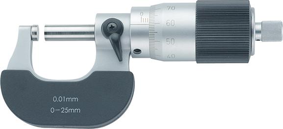 Stupnice matně pochromované, měrky osazeny tvrdým kovem, regulace měřicí síly jemnou ráčnou, s termickou izolací na ruce, s upínací páčkou. Dodáváme s nastavovacím klíčem, počínaje rozmezím měření 25-50 mm s nastavovací měrkou, v plastovém boxu.