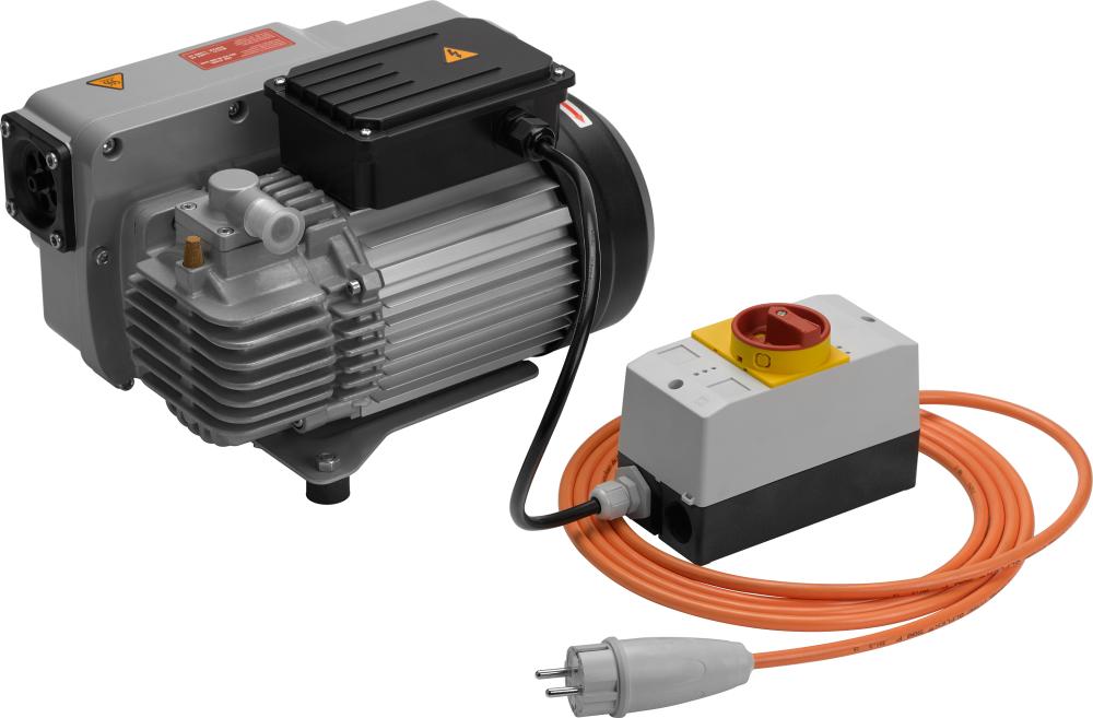 Obsah dodávky: Vakuové čerpadlo s jemným sítovým filtrem na straně sání, odlučovačem olejové mlhy, pryžokovovým tlumičem a prvotní olejovou náplní.