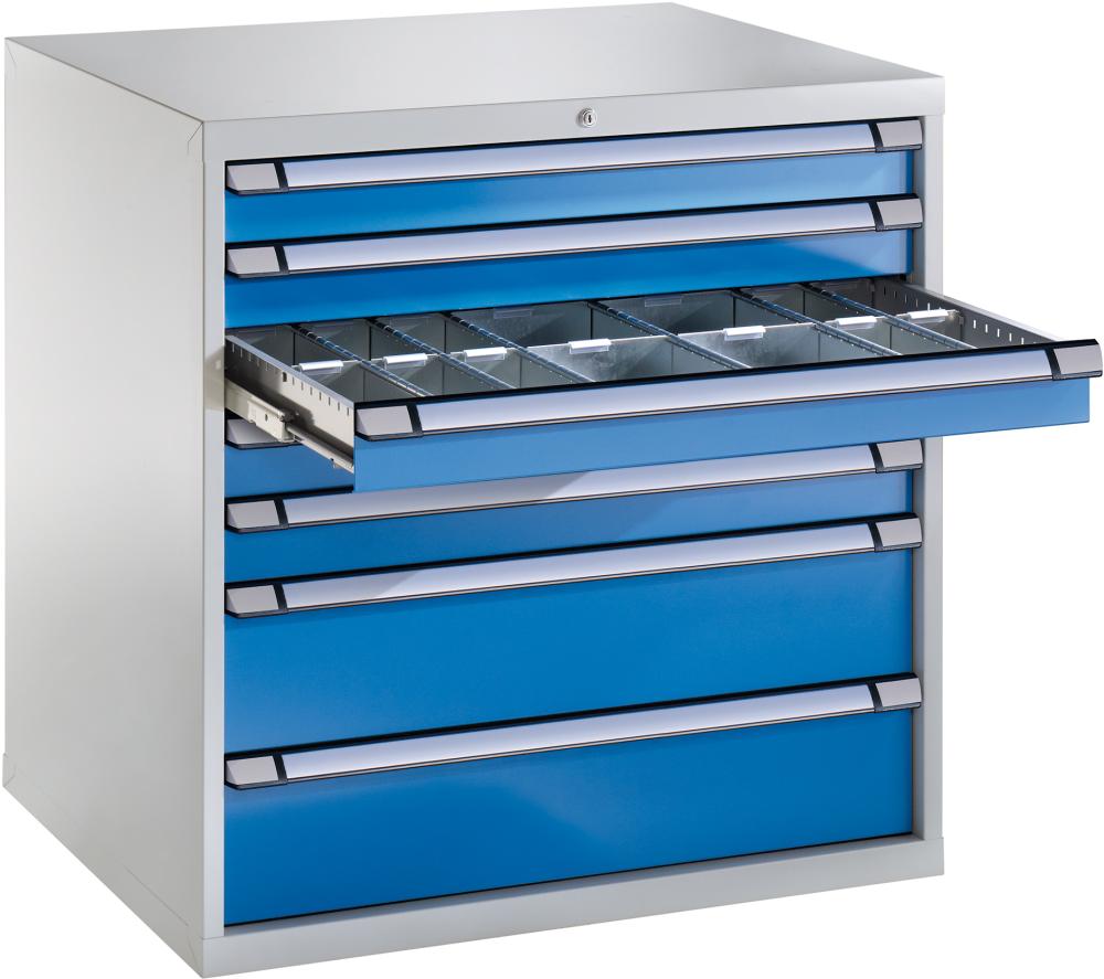 Tyto zásuvkové skříně jsou vhodné pro flexibilní a profesionální ukládání drobných dílů a nářadí. Celková nosnost při rovnoměrně rozloženém zatížení je 4000 kg.