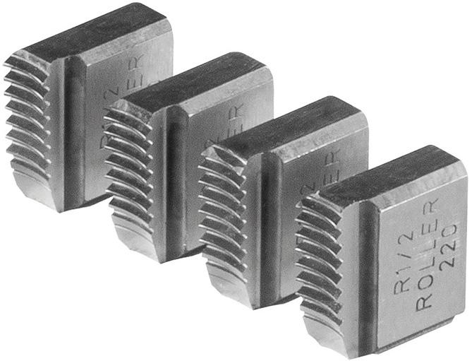 4 závitořezné čelisti, z tvrdé houževnaté speciální oceli pro extrémně dlouhou trvanlivost. Pro rychlovýměnné závitořezy Central a rychlovýměnné závitořezné hlavy S.
