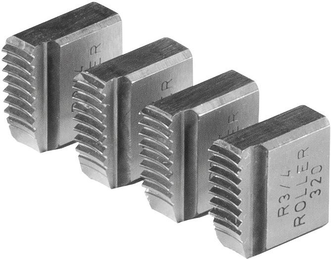 4 závitořezné čelisti, z tvrdé houževnaté speciální oceli pro extrémně dlouhou trvanlivost. Pro rychlovýměnné závitořezy Central a rychlovýměnné závitořezné hlavy S.