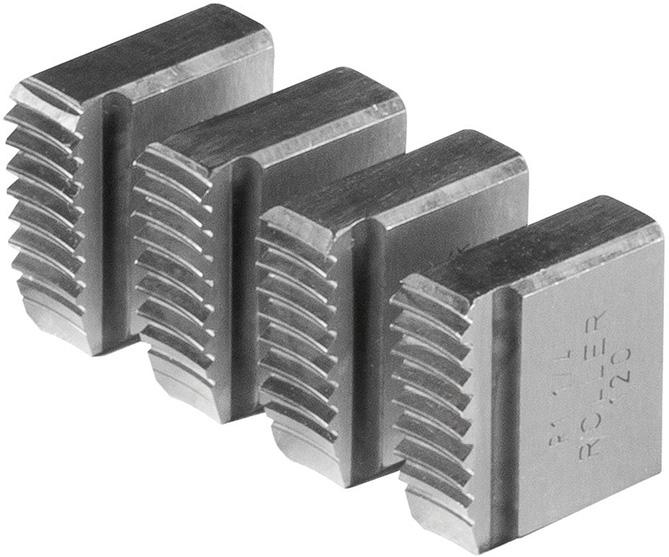 4 závitořezné čelisti, z tvrdé houževnaté speciální oceli pro extrémně dlouhou trvanlivost. Pro rychlovýměnné závitořezy Central a rychlovýměnné závitořezné hlavy S.