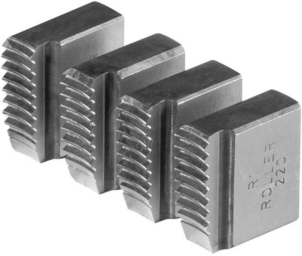4 závitořezné čelisti, z tvrdé houževnaté speciální oceli pro extrémně dlouhou trvanlivost. Pro rychlovýměnné závitořezy Central a rychlovýměnné závitořezné hlavy S.